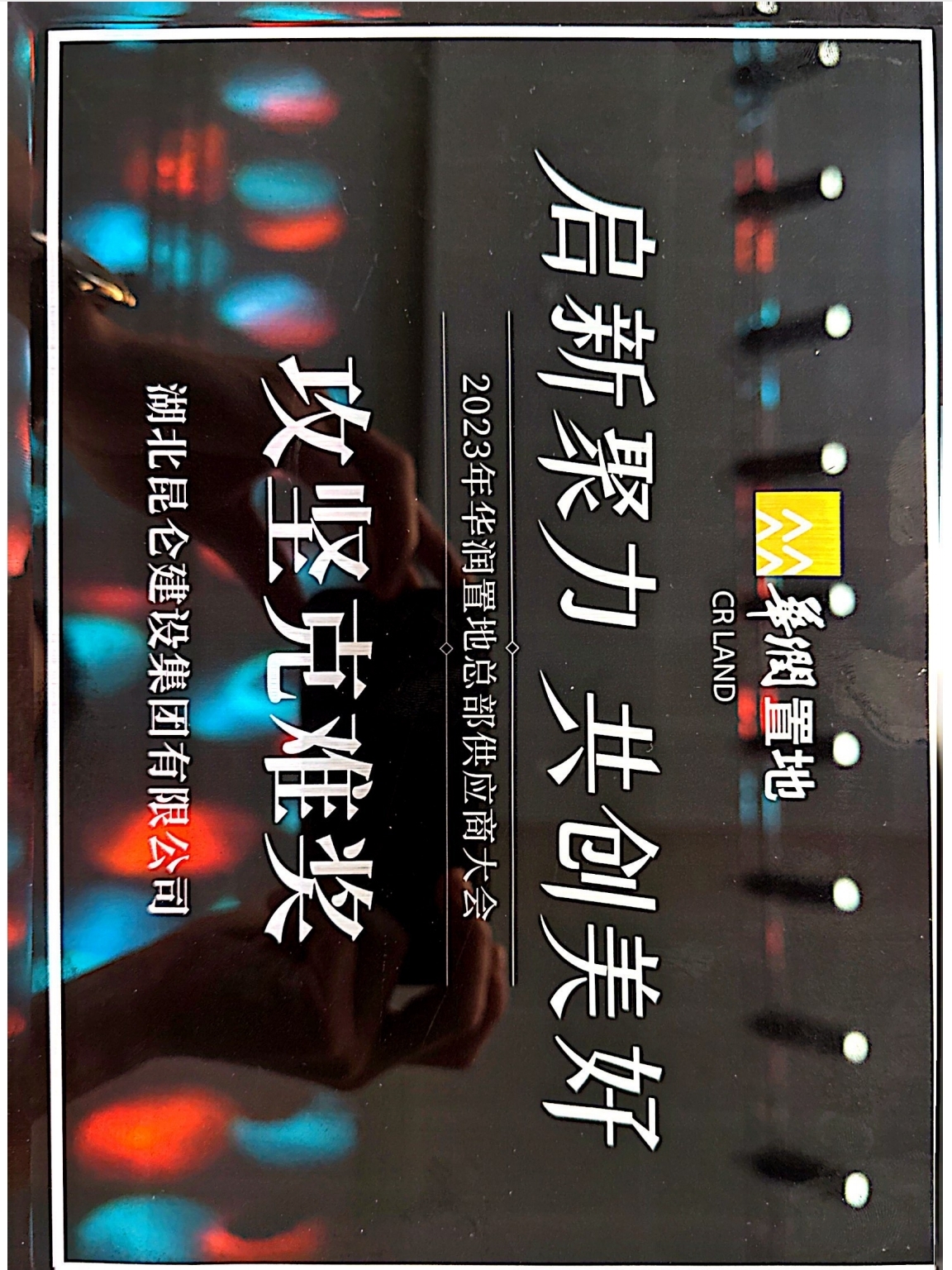2023年5月榮獲華潤置地供應商“攻艱克難獎”
